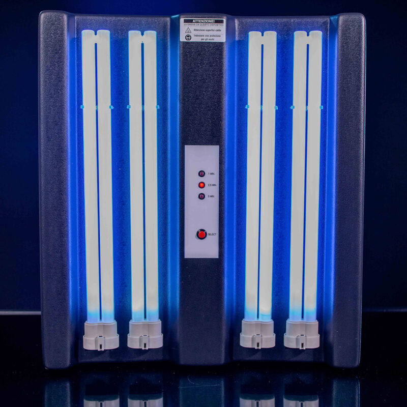 Queste lunghezze d’onda sono diverse da quelle utilizzate nei lettini abbronzanti. Inoltre, i trattamenti vengono misurati con estrema attenzione per mantenere l’esposizione ben al di sotto della soglia per qualsiasi possibile sviluppo di eritemi.